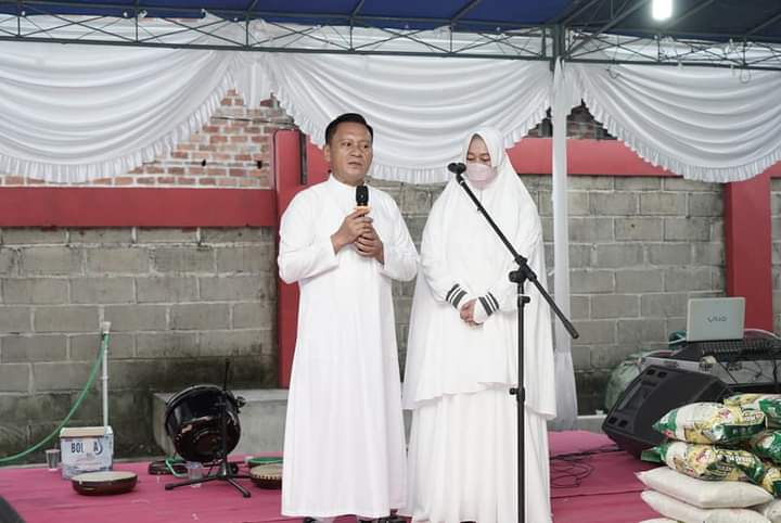 Dengan Mengenakan pakaian serba Putih dengan suasana Penuh keakraban dan kekeluargaan, Ketua DPRD Herman Suhadi bersama istri, menyambut baik setiap tamu undangan yang datang.