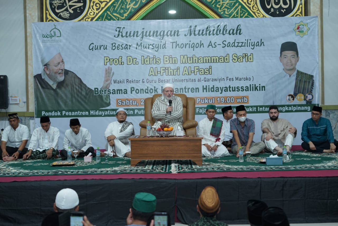Pangkalpinang, Realistisnews.com –Sabtu(20/8/22) Prof. Dr. Maulana Sayyid Idris bin Muhammad Said Al-Fihri Al-Fasi, guru besar dan sekaligus Wakil Rektor Universitas Al-Qorowiyin Kerajaan Maroko mengisi ceramah agama di Pondok Pesantren Hidayatussalikin Pangkalpinang. Beliau juga merupakan ahli sufi, mursyid Thoriqoh Qodiriyah Sadziliyah Fasiyah.