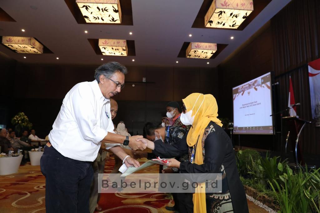 Penjabat (Pj) Gubernur Kepulauan Bangka Belitung (Kep. Babel) Ridwan Djamaluddin pun hadir dalam penyerahan sertifikat yang di selenggarakan oleh Kantor Wilayah Pertanahan Kep. Babel yang berlangsung di Soll Marina Hotel.