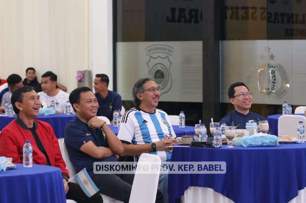 Keduanya punya tim favorit tersendiri yang terlihat dari jersey yang dikenakan. Penjabat Gubernur Ridwan mendukung Argentina. Sedangkan kapolda mendukung Timnas Prancis, dengan mengenakan jersey Les Blues saat nonton bareng (Nobar) di Gedung Tribrata Mapolda Babel.