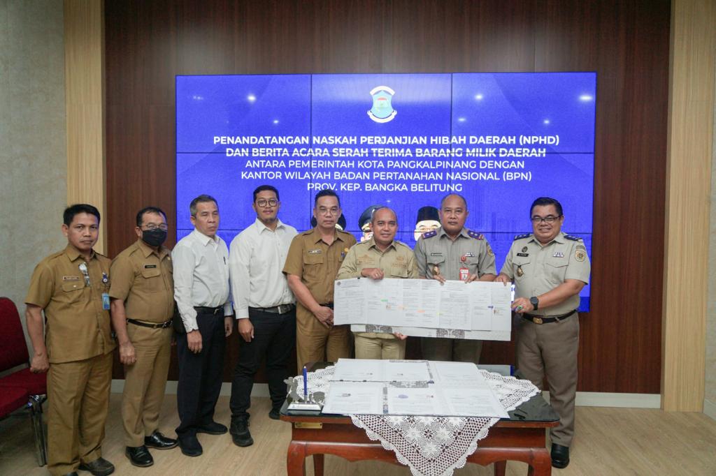 Pangkalpinang, Realistisnews.com — Walikota Pangkalpinang, Maulan Aklil (Molen) lakukan Penandatanganan Naskah Perjanjian Hibah Daerah (NPHD) dan berita acara serah terima barang milik daerah antara Pemerintah Kota Pangkalpinang dengan Kantor Wilayah Badan Pertanahan Nasional (BPN) Provinsi Kepulauan Bangka Belitung.