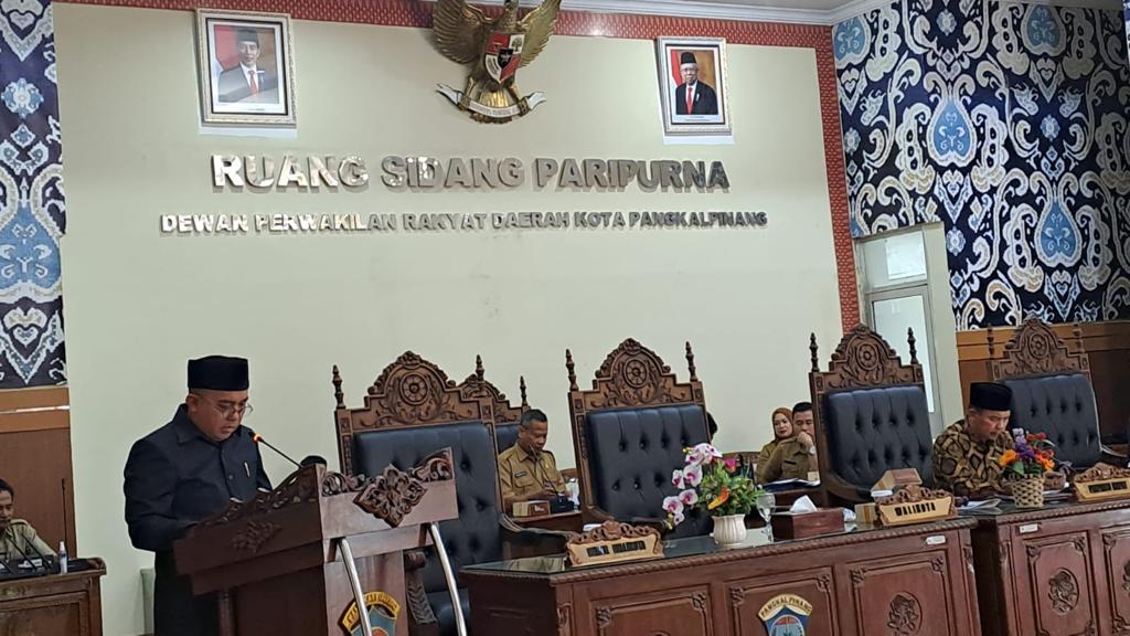DPRD terhadap Raperda tentang Pertanggungjawaban Pelaksanaan APBD tahun anggaran 2022. Wali Kota Pangkalpinang, Dr. H. Maulan Aklil dalam sambutannya menyampaikan “Beberapa waktu yang lalu tepatnya pada tanggal 3 Juli tahun 2023 telah disampaikan pidato dalam rangka penyampaian Rancangan Peraturan Daerah Pertanggungjawaban atas Pelaksanaan APBD tahun anggaran 2022, yang merupakan kewajiban konstitusional yang dilakukan oleh seorang kepala daerah baik itu Gubernur, Bupati maupun Wali Kota sebagaimana yang diamanatkan dalam pasal 194 ayat (1). Peraturan Pemerintah Republik Indonesia nomor 12 tahun 2019 tentang Pengelolaan Keuangan Daerah yaitu Kepala Daerah menyampaikan Rancangan Perda tentang pertanggungjawaban pelaksanaan APBD kepada DPRD dengan dilampiri laporan keuangan yang telah diperiksa oleh Badan Pemeriksa Keuangan serta ikhtisar laporan kinerja dan laporan keuangan BUMD paling lambat 6 (enam) bulan setelah tahun anggaran berakhir”.