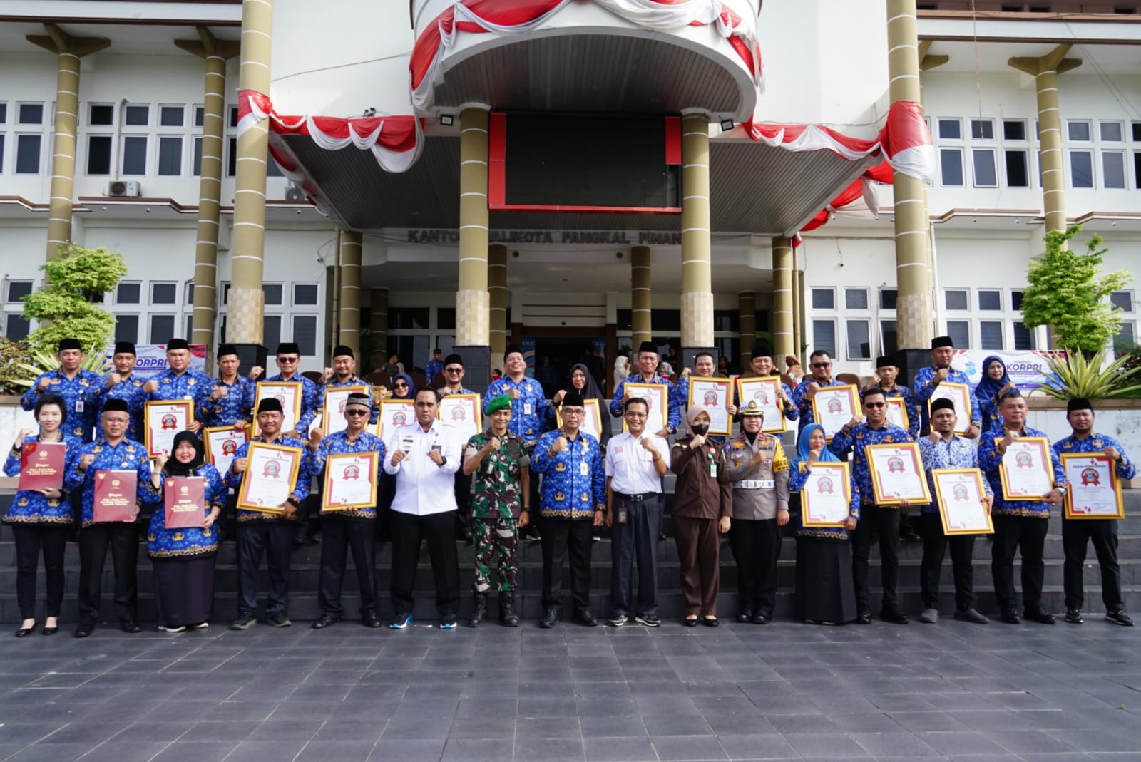 Pemkot Pangkalpinang juga memberikan tanda kehormatan Satya Lancana Karya Satya 2023 dan penghargaan inovasi daerah ke sejumlah OPD.