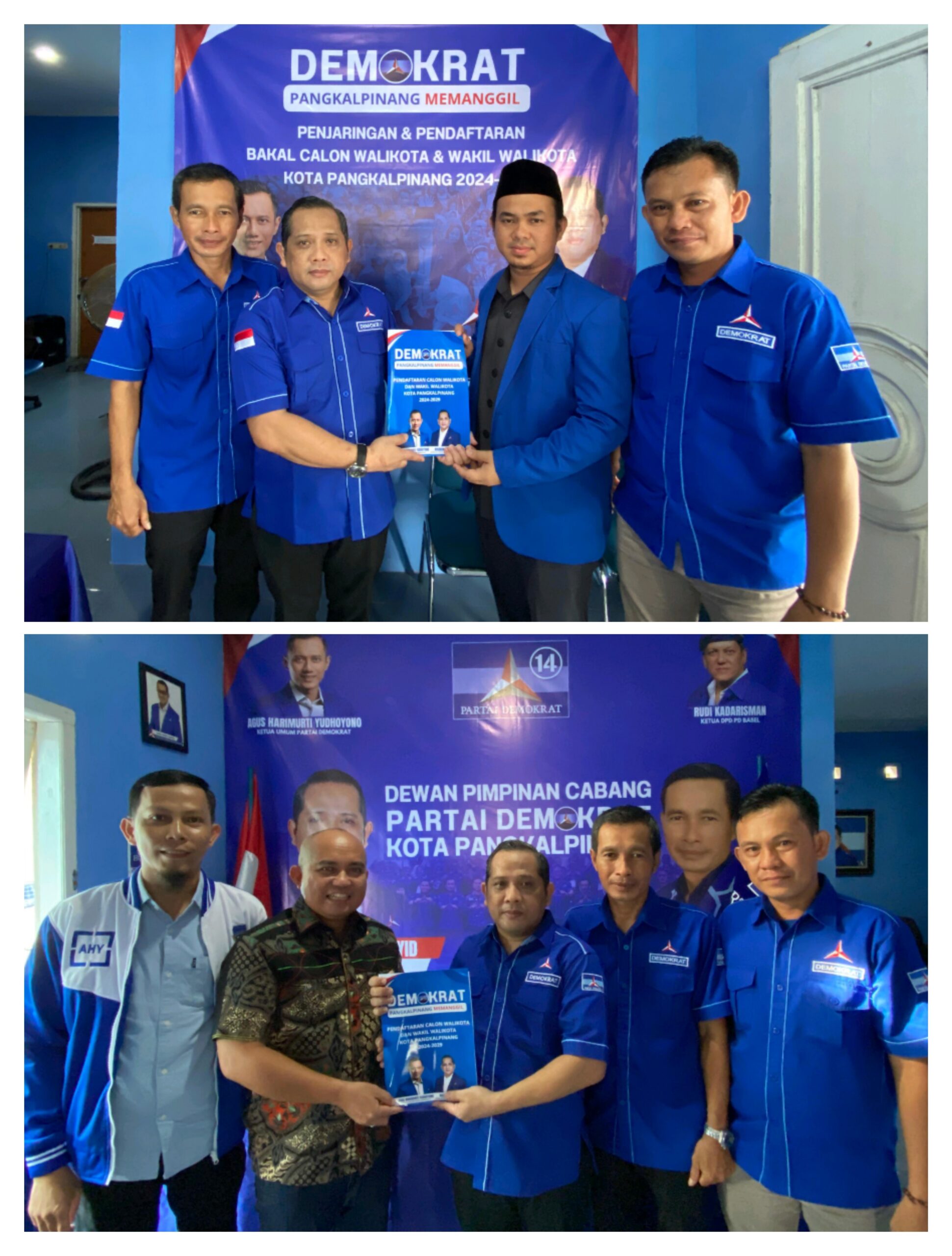 Di tempat yang sama ketua DPC Partai Demokrat Dian Rasyid mengatakan ” bahwa hari ini sudah ada dua calon yang mendaftar di partai Demokrat. Yang pertama mendaftar tadi kira-kira jam setengah dua dari kader internal partai kami sendiri Rudi Kurniawan. Kebetulan beliau tidak maju lagi sebagai anggota DPRD. Karena beliau fokus ingin mencalonkan diri sebagai Walikota Pangkalpinang tahun ini. Selanjutnya ada Petahana Maulan Aklil sebagai pendaftar kedua. ” keyakinan dari kami terlepas siapapun yang akan mendaftarkan diri dari kader kami ataupun luar partai nantinya akan kami lakukan penjaringan dan akan kami serahkan ke DPP selanjutnya setelah penjaringan dari DPP kami akan memberi Surat tugas bukan berbentuk SK lagi. Selanjutnya siapapun yang nantinya akan dipilih bang Molen sebagai wakilnya DPC Partai Demokrat akan tetap mendukung beliau ” tutupnya.