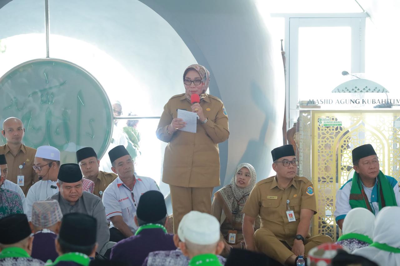 Pangkalpinang, Realistisnews.com – Penjabat Wali Kota Pangkalpinang, Dra. Lusje Anneke Tabalujan, M.Pd lakukan pelepasan jamaah haji Kota Pangkalpinang secara simbolis di Masjid Agung Kubah Timah Kota Pangkalpinang, Selasa (14/5/2024).