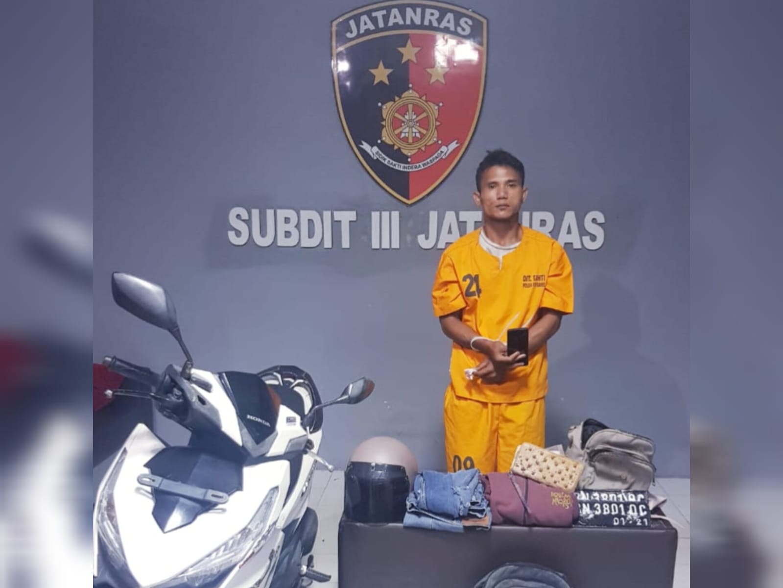 “Pelaku barang bukti 1 unit motor dan handphone kini sudah diamankan di Mapolda guna proses penyidikan lebih lanjut.”pungkas Jojo.
