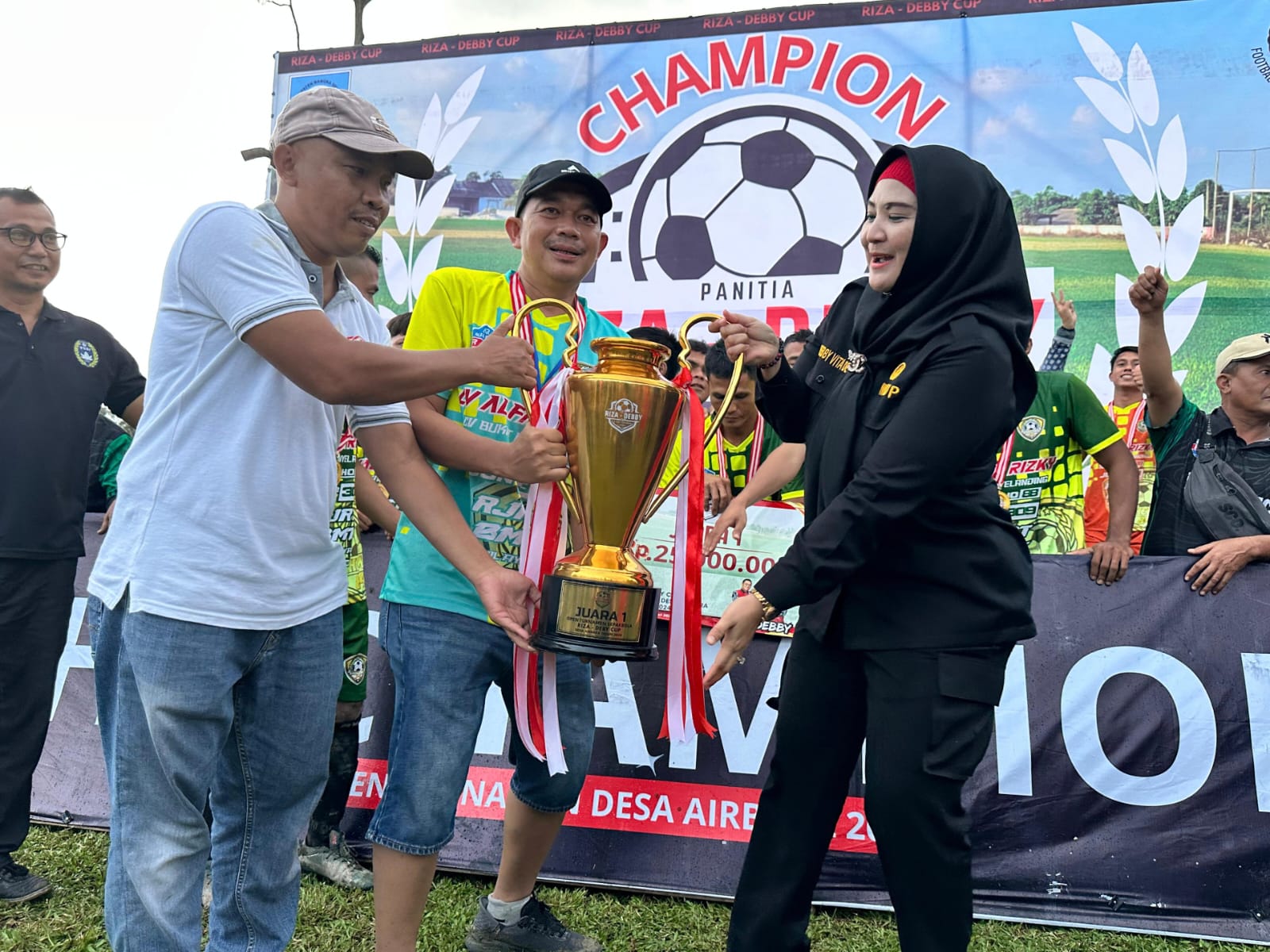 Pada rangkaian acara penutupan, Wabup Debby juga menyerahkan trofi dan uang pembinaan kepada para pemenang turnamen. Juara pertama diraih Bahem FC (Desa Nyelanding), juara kedua Rajawali FC (Desa Ranggung), juara ketiga Merdeka FC (Toboali), dan juara keempat Benteng 5 (Desa Bencah).