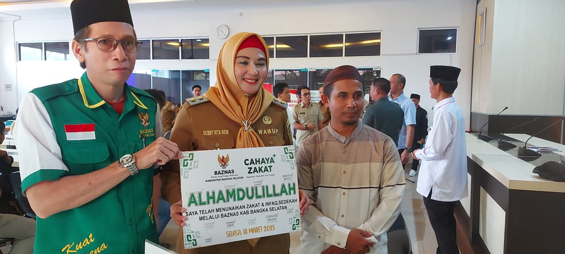 Toboali, Realistisnews.com – Badan Amil Zakat Nasional (BAZNAS) bersama Pemerintah Kabupaten Bangka Selatan menggelar kegiatan Gerakan Teladan Pemimpin dan Pengusaha Berzakat Tahun 2025. Kegiatan ini berlangsung di Ruang Rapat Gunung Namak, Kompleks Perkantoran Pemerintah Kabupaten Bangka Selatan, Selasa (18/3/2025).