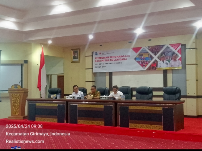 Pangkalpinang, Realistisnews.com – Pemerintah Kota (Pemkot) Pangkalpinang mengapresiasi pemberian Penghargaan bagi mitra Palang Merah Indonesia (PMI) tahun 2024. Penghargaan ini diberikan kepada 139 mitra PMI yang digelar di Balai Besar Betason Kantor Wali Kota Pangkalpinang, Kamis (24/04/2025).
