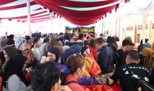 Pantauan dilokasi, sejumlah warga tampak antusias menyerbu belasan stand bazar yang disiapkan kendati gerimis mengguyur sejak pagi.