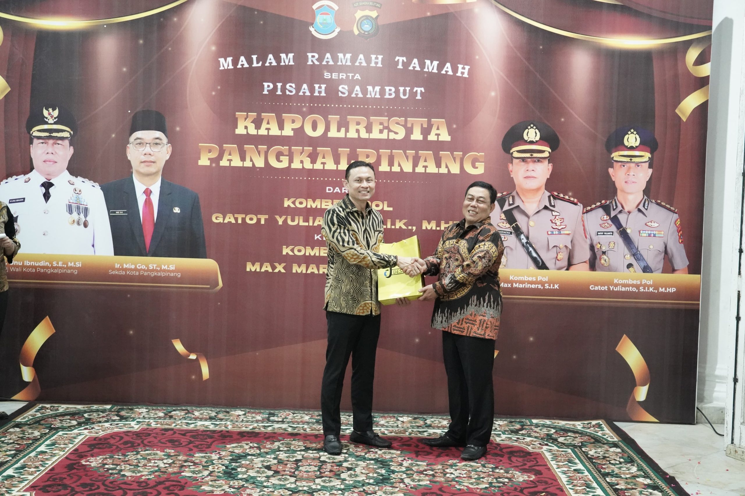 Pangkalpinang , Realistisnews.com – Malam ramah tamah dalam rangka pisah sambut Kapolresta Pangkalpinang yang baru ke Kapolresta sebelumnya dilaksanakan di Rumah Dinas Wali Kota Pangkalpinang, Selasa, (8/7/2025) malam.