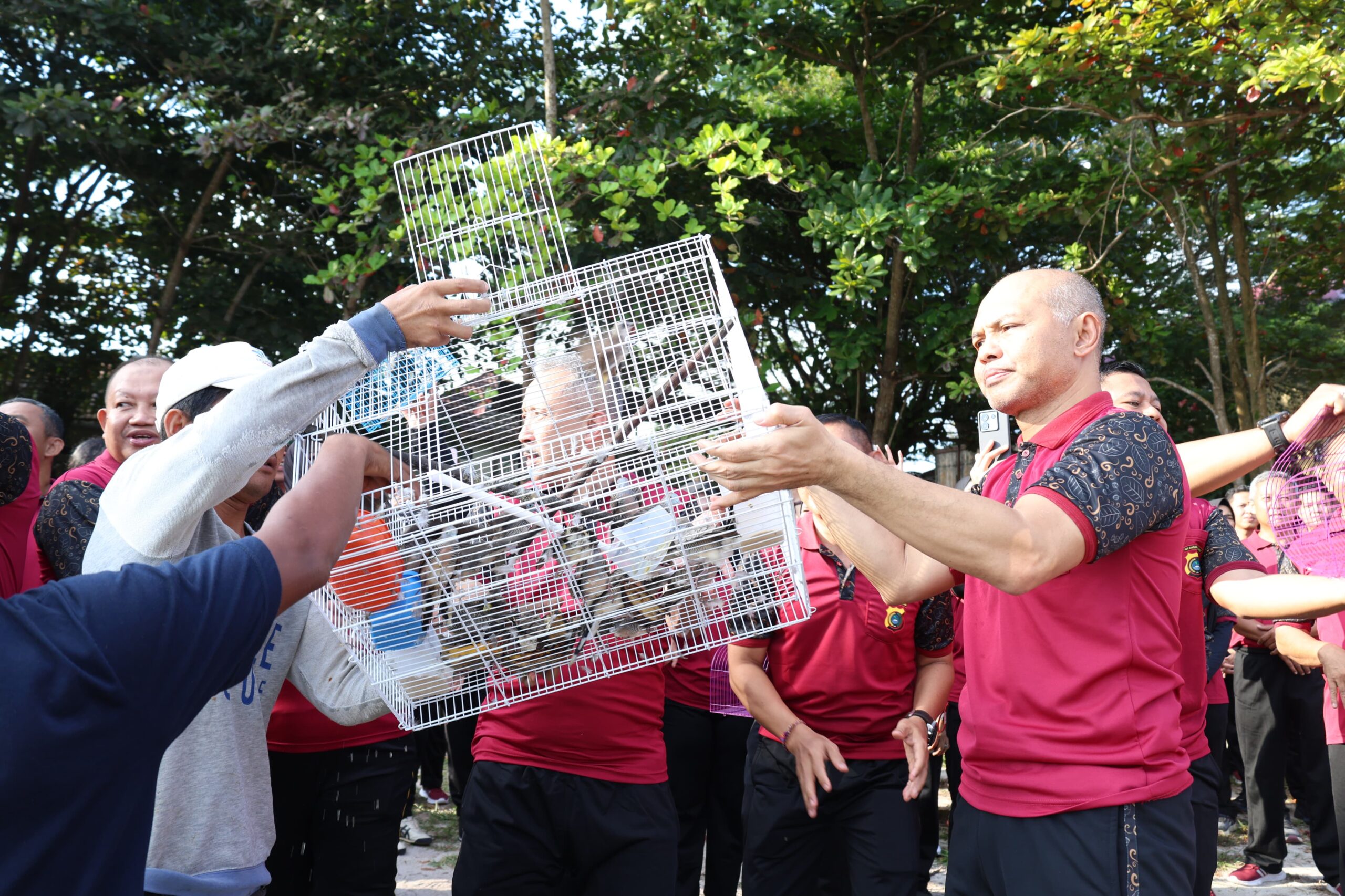 Selain itu, 100 ekor burung jenis kutilang hingga perkutut turut dilepasliarkan sebagai wujud kepedulian menjaga kelestarian lingkungan dan ekosistem lokal secara berkelanjutan.