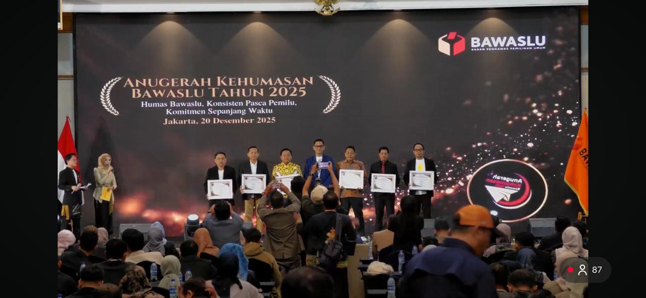 Jakarta, Realistisnews.com – Prestasi membanggakan kembali diraih Bawaslu Kota Pangkalpinang dengan meraih penghargaan Terbaik 3 kategori Siaran Pers dalam anugerah Kehumasan Bawaslu Tahun 2025. Satu hari sebelumnya bawaslu Kota Pangkalpinang juga meraih Penghargaan terbaik tiga kategori bawaslu kabupaten/kota dengan aktivitas pencegahan terbaik pada malam apresiasi pencegahan dan partisipasi masyarakat tahun 2025 yang diadakan di Hotel Grand Sahid Jakarta(20/12/2025)